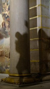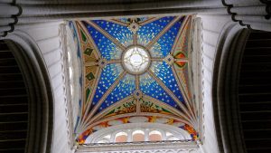 Inside – after all the great arched roofs in Madrid – here as well we first looked straight up. Hm … not bad, but it looks a bit as if plastered with chewing gum, don’t you think?