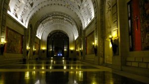 Ihr erspäht, was da unter dem Gesicht zu sehen ist? Der Legende nach hat Carl Smitt das Gebäude besessen. Er fand heraus, dass seine Frau ihn betrog. Um das aller Welt kundzutun, soll er einen Bildhauer beauftragt haben, an der Wand sein Gesicht nachzubilden, und darunter ihre Vagina. Übrigens so, dass bei Regen seine „Tränen“ direkt darauf fallen. Tja …