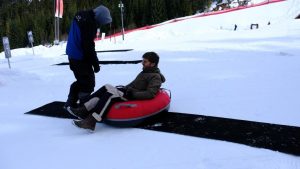 This small tractor we saw when we walked to the maze. We also dared to enter it, and: we found something!!! To wit: