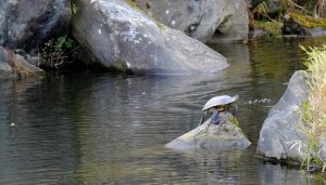 We had had no idea that there are so many animals to see in this park. So we were very surprised when at entering the park, we did not just see the water fountain (see the picture further up), but also next to it, around a few dried up bulrushes, lots of people with cameras on tripods. We asked them, what is there to see here: a hummingbird building a nest! We did not know that hummingbirds live here!!! Oh well, we walked on, and then 30m further on, what did we see?