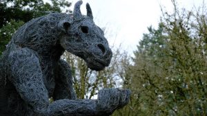 In diesem botanischen Garten sind auch viele Kunstwerke verstreut.