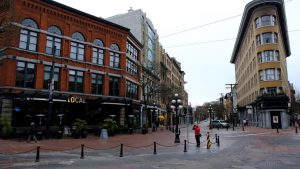 So, that was VanDusen. Next on our list was the Bloedel Conservatory. That is a big hothouse, full of exotic plants and birds. Well, we parked our car just before five and enjoyed the great view of Vancouver for a moment: