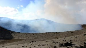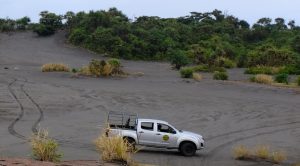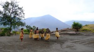 Erster Halt war beim Vulkan, in der „Asche-Ebene”. Hier wurden wir nett begrüßt, mit Kokosnuss-Drinks und netten Tänzen.