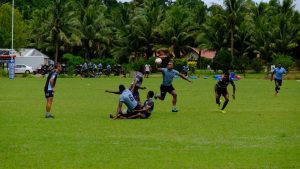 Nach dem Besuch beim Häuptling (keine Fotos erlaubt), haben wir eine Menge über die Verwendung von Kokosnüssen gelernt. Erst wurde eine „geschält“.