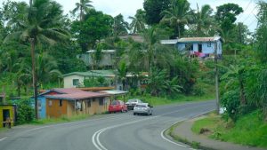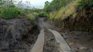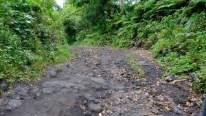 Nach Tänzen und Genehmigung des örtlichen Häuptlings gings für die ca. 25 Touristen hinten in ein paar Pick-Ups wieder mal eine tolle Straßen entlang … hoch zum Vulkan.