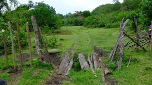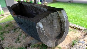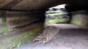 Then we went to the “cave“. Under the hardened volcano ash it was dug, so that a warrior could do guard duty from there. Here you see his “bed”.