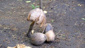 After our visit with the chief (no photos allowed), we learned a lot about the use of coconuts. To start with, one was “peeled”.