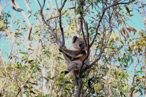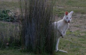 Nachdem unser Gepäck verstaut war, sind wir noch spazieren gegangen und hatten auch gleich Glück: Hier gibt es nämlich weiße Wallabys!