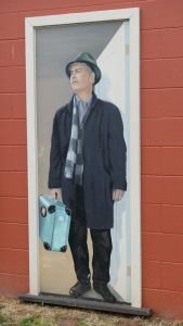 einer alten Post mit schönem Glockenturm (er spielt die Big-Ben-Melodie)
