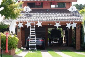 On the way back we drove along the streets here in town. Because this evening the Christmas bus was traveling the streets, with the jury that decides which is the best decorated house. For that reason during the day there was much handicraft going on, and now at night the big show was on.