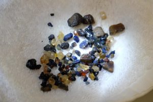 We found a few nice stones, even a reddish sapphire (no, they are not only blue …). Here on the photo you don’t see that one, but instead some nice red zircons, and of course sapphires.