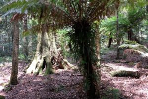 Die Wanderung war es aber mehr als wert. Wir hatten den Wald für uns alleine, der Weg war kaum zu erkennen, über trockenes Laub zwischen den Bäumen und Farnen hindurch.