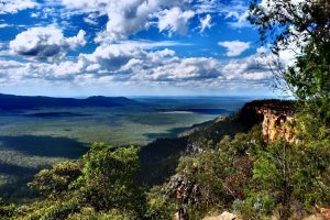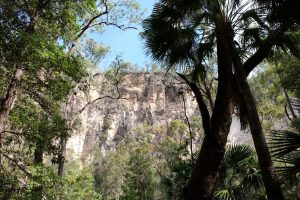 Aber dann waren wir endlich da und sind in der zunehmenden Hitze losgelaufen. Carnarvon Gorge ist eine riesige Schlucht, links und rechts sieht man (in großem Abstand) die Felswände.