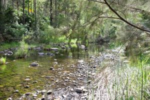 But then we were there, finally, and started our hike in the increasing heat. Carnarvon Gorge is a huge gorge, to the left and the right you see (in the distance) the rock walls.